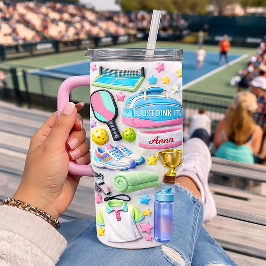 Custom Name Gifts for Pickleball Players - Personalized 40oz Pickleball Tumbler With Straw