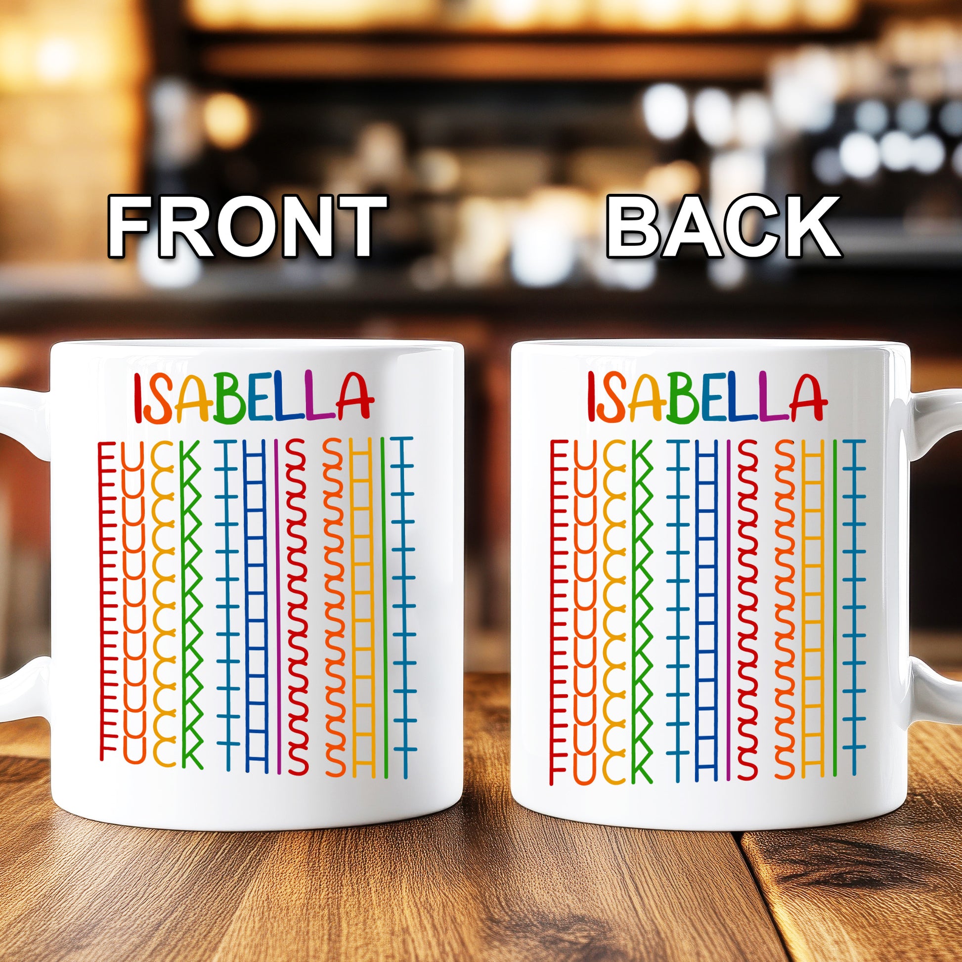 Personalized “Fuck This Shit” Funny Mug — the ultimate personalized funny mug for people who say it like it is. Your custom name sits above bold rainbow lines that spell the phrase, creating a standout rainbow mug that pops on any desk. This sarcastic coffee cup makes an instant conversation starter and the perfect adult humor gift for a friend, coworker, boss, roommate, or partner. Great for birthdays, Christmas, Secret Santa, quitting parties, office gag gifts, or “just because,” this custom name mug doubles as everyday motivation (and a little protest) during tough mornings. Add a name to create a one-of-a-kind profanity mug / novelty mug that lets your cup do the talking.