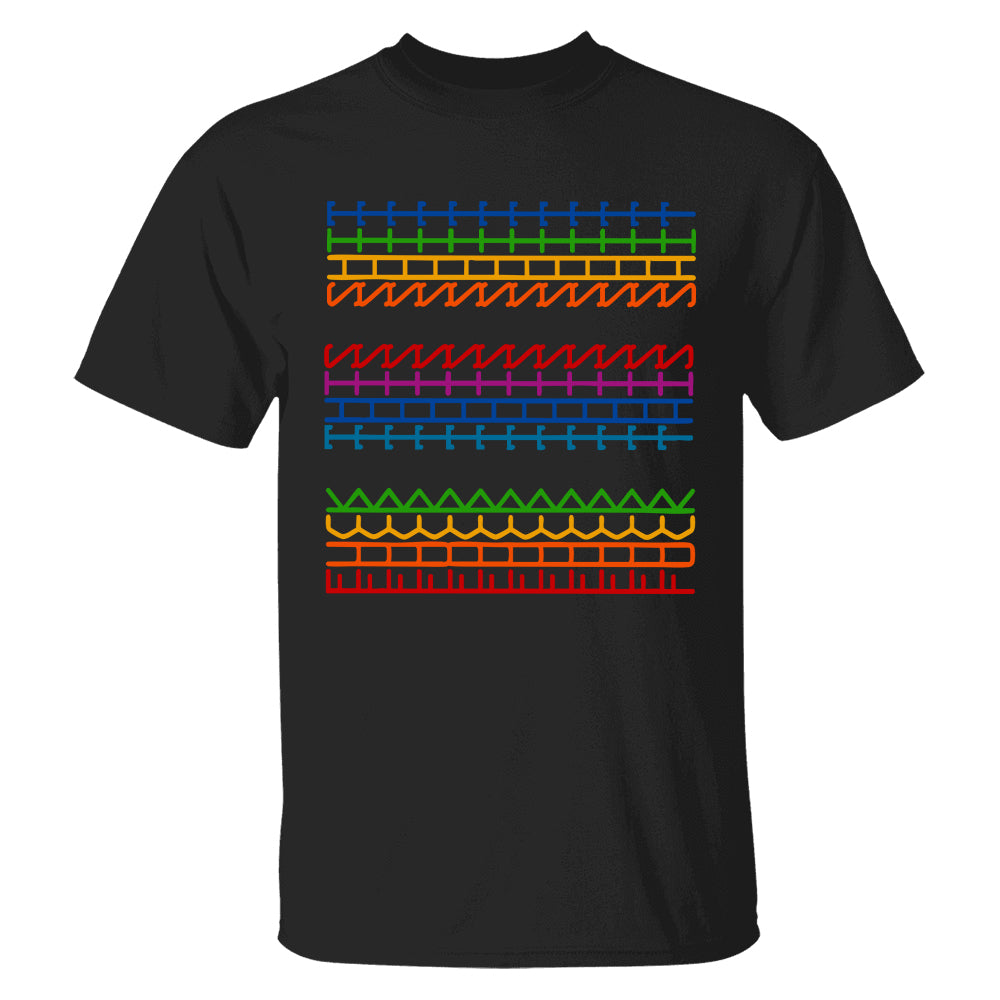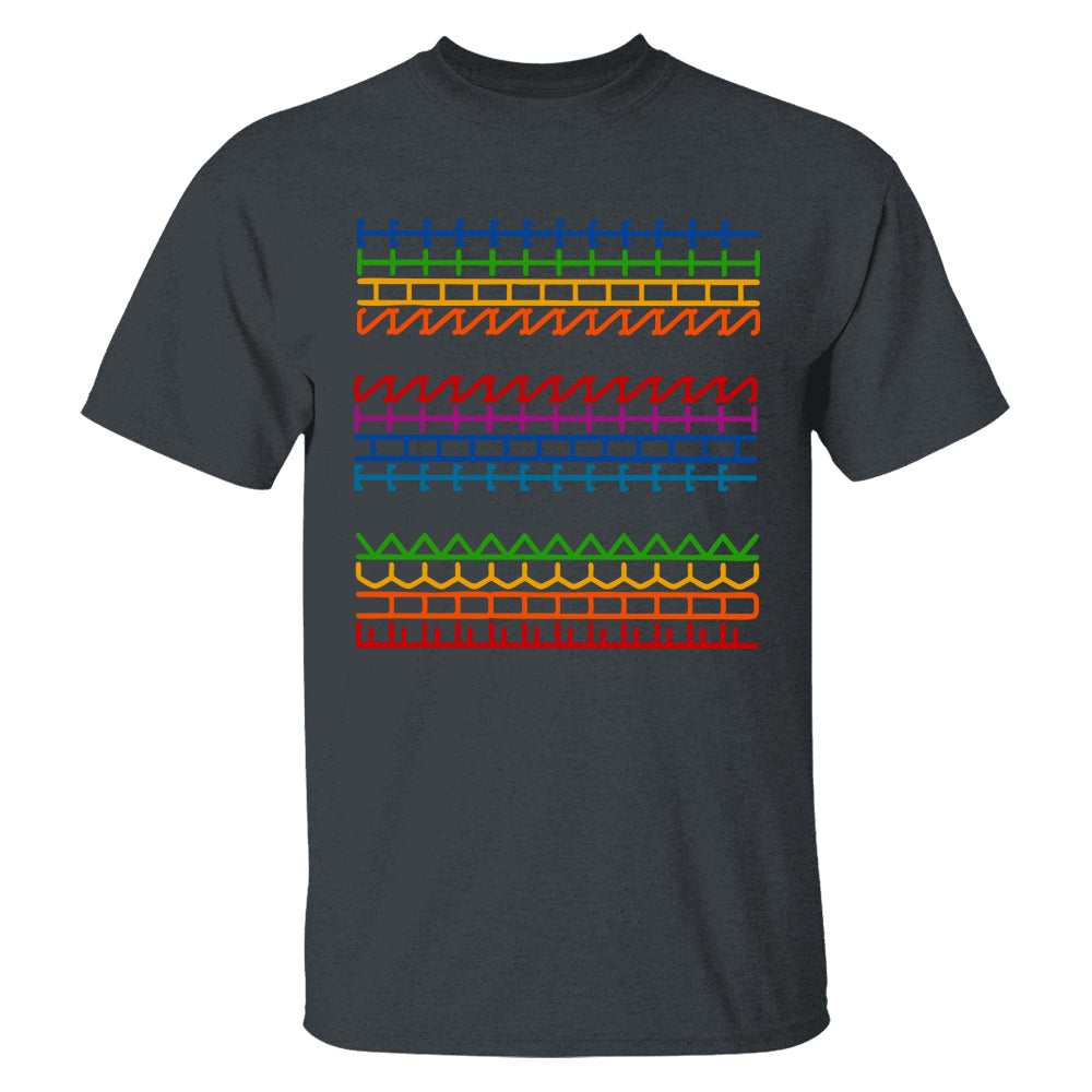 Celebrate your love for crafting and your identity with this vibrant, rainbow-colored stitch pattern t-shirt. Whether you're a quilter, seamstress, crafter, or just love bold, artistic designs – this shirt is made for you. Each row features iconic stitch styles in bright rainbow colors, symbolizing creativity, unity, and pride. Printed on a comfortable, high-quality cotton tee that feels as good as it looks – perfect for everyday wear or pride celebrations.