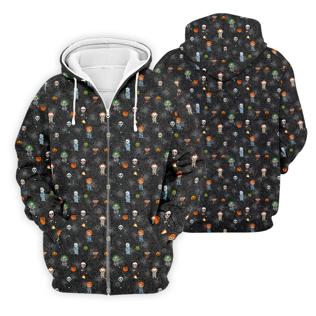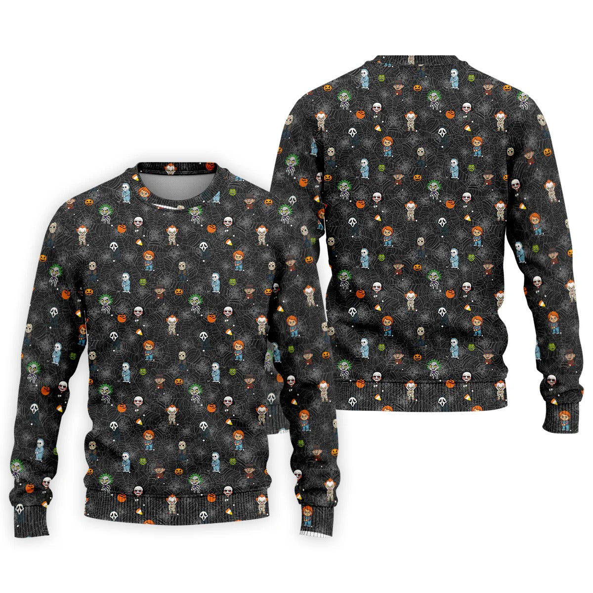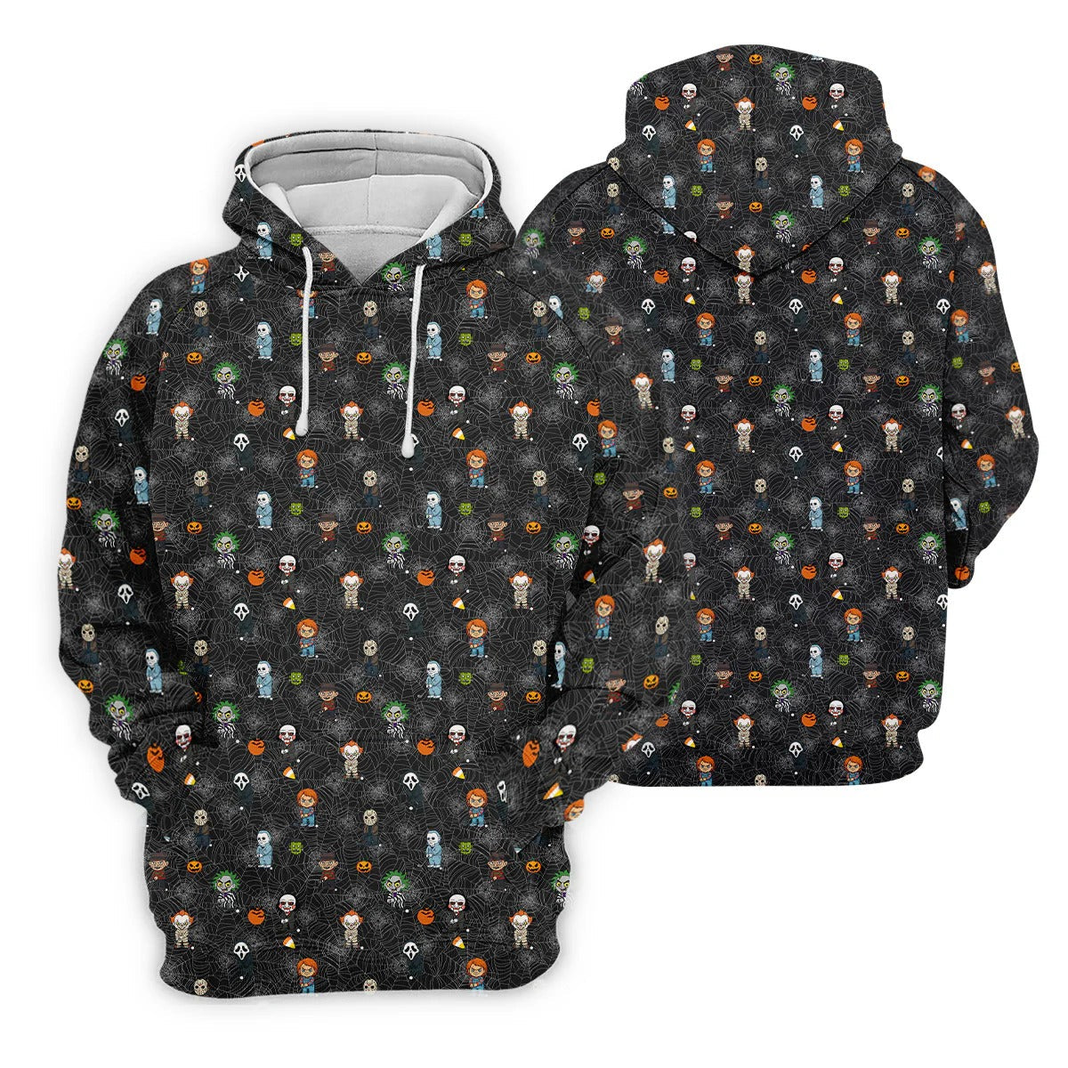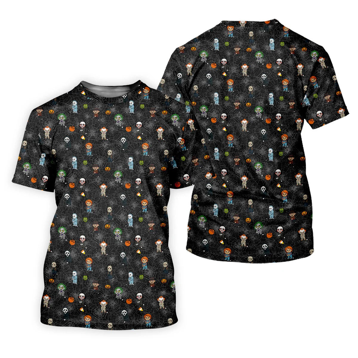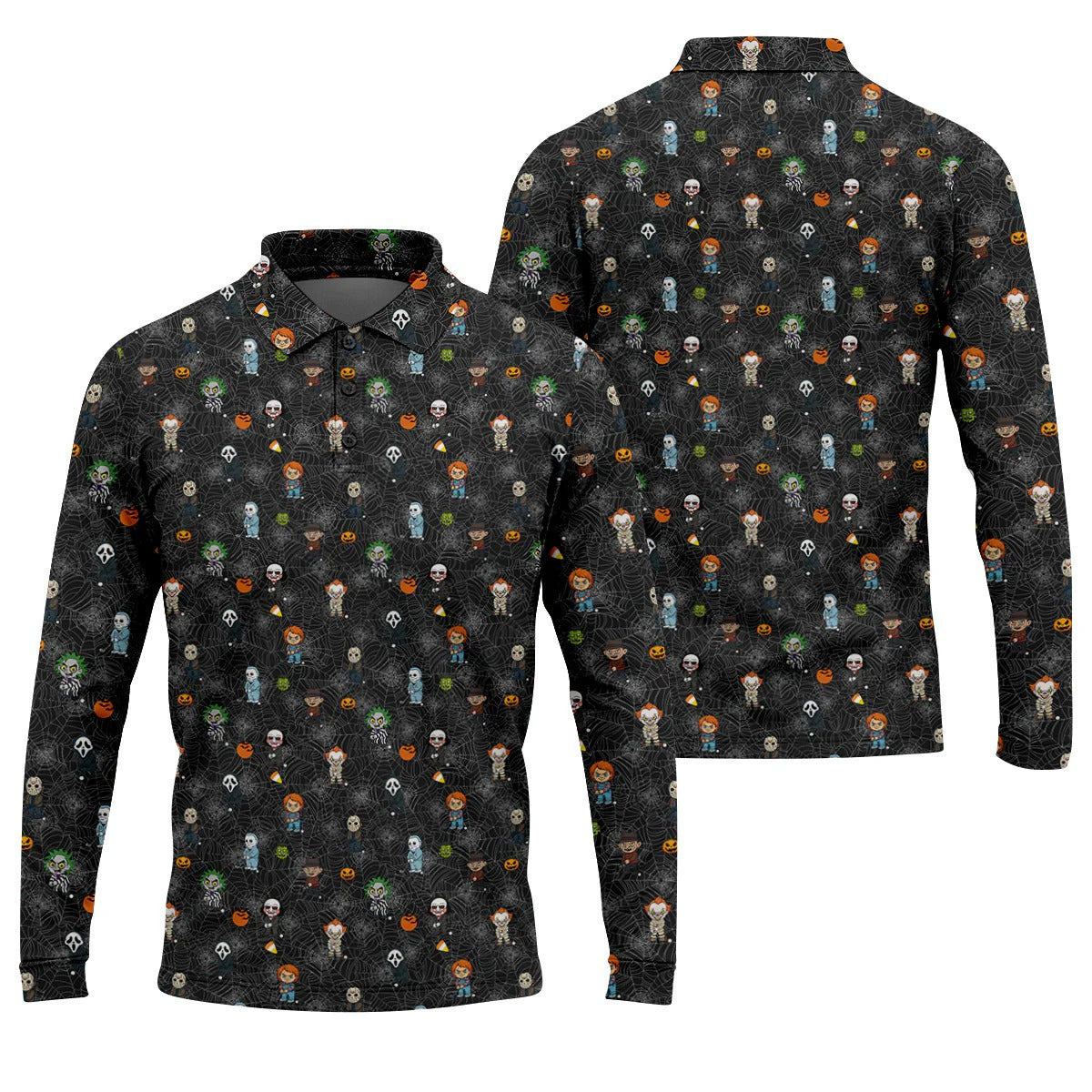 Funny Horror Character Black Golf Polo Shirt, Horror Movie Shirt, Halloween Golf Shirt, Fun Golf Polos For Men