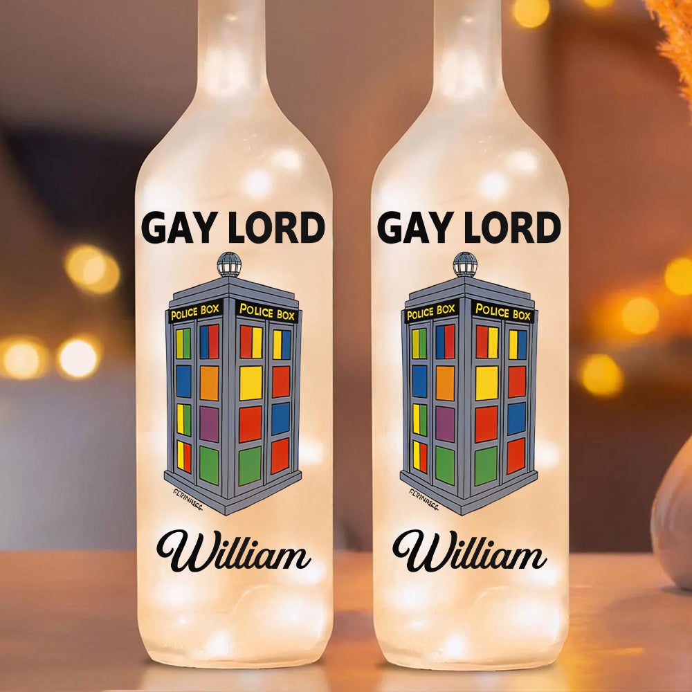 Celebrate individuality and pride with our "GAY LORD" personalized frosted glass bottle lamp, featuring a colorful graphic inspired by retro phone booths. Your name adds a special, personal touch, making it a standout piece for your home or a fantastic, memorable gift. This bottle lamp gives off a warm, inviting glow while spreading a message of pride, humor, and self-love. Whether it’s for a cozy nook, a festive party, or simply a reminder to live authentically, this piece lights up the room — and hearts.