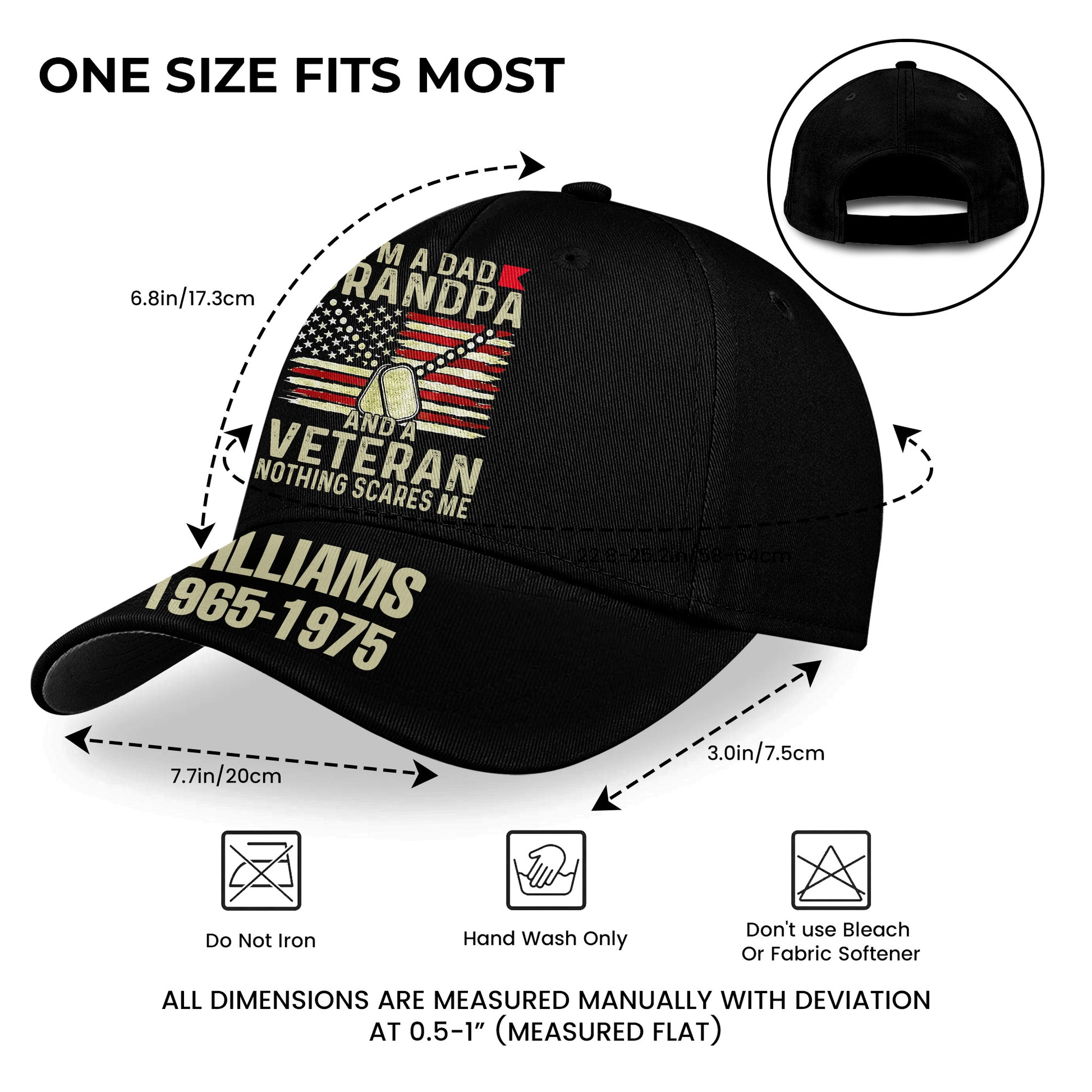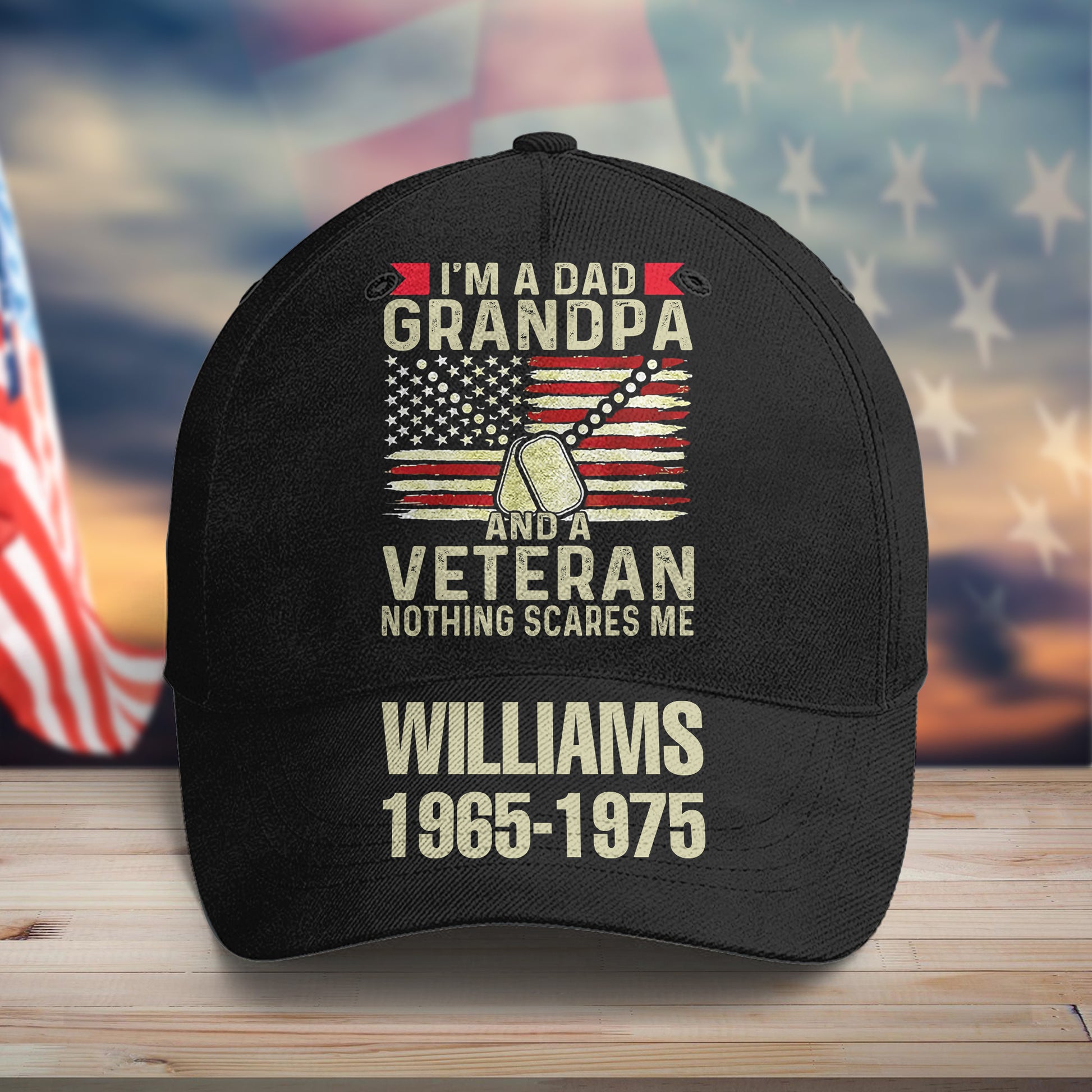 I'm A Dad Grandpa And A Veteran Nothing Scares Me - Personalized Cap