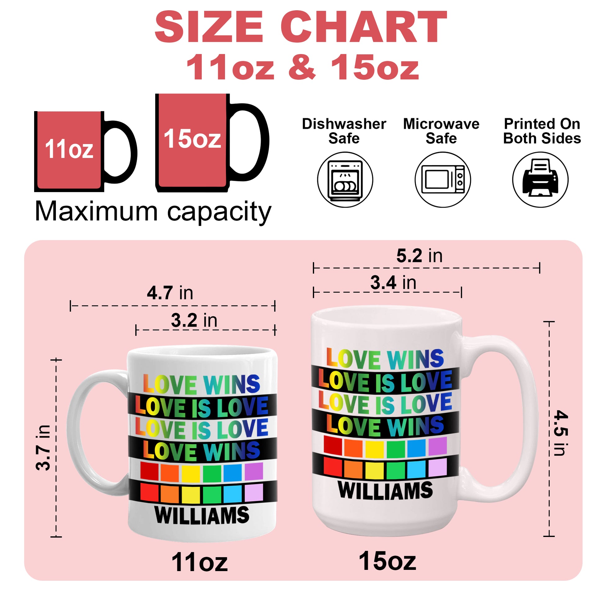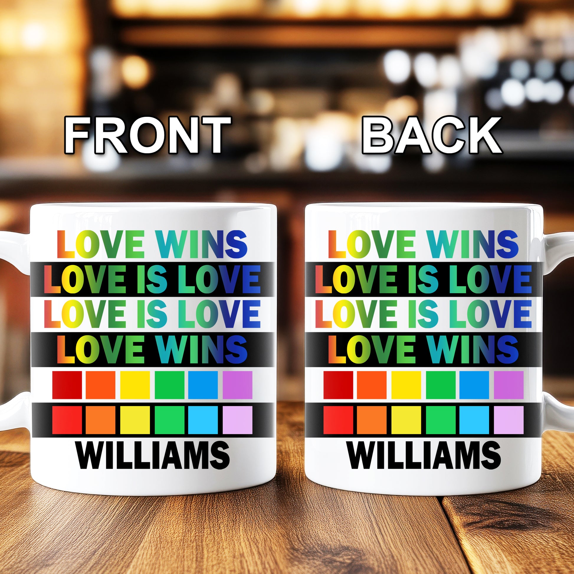 The mug is a meaningful LGBTQ+ gift for partners, spouses, best friends, family, and proud allies. It fits effortlessly into any occasion: birthdays, Pride Month, anniversaries, weddings, engagements, coming-out celebrations, or just a heartfelt show of support. Beyond function, it offers a daily dose of positivity—reminding the recipient that love always wins and their identity deserves to be seen. So why not let your loved ones—or even yourself—feel a little more celebrated? Personalize this Pride mug today and share more love, color, and affirmation.