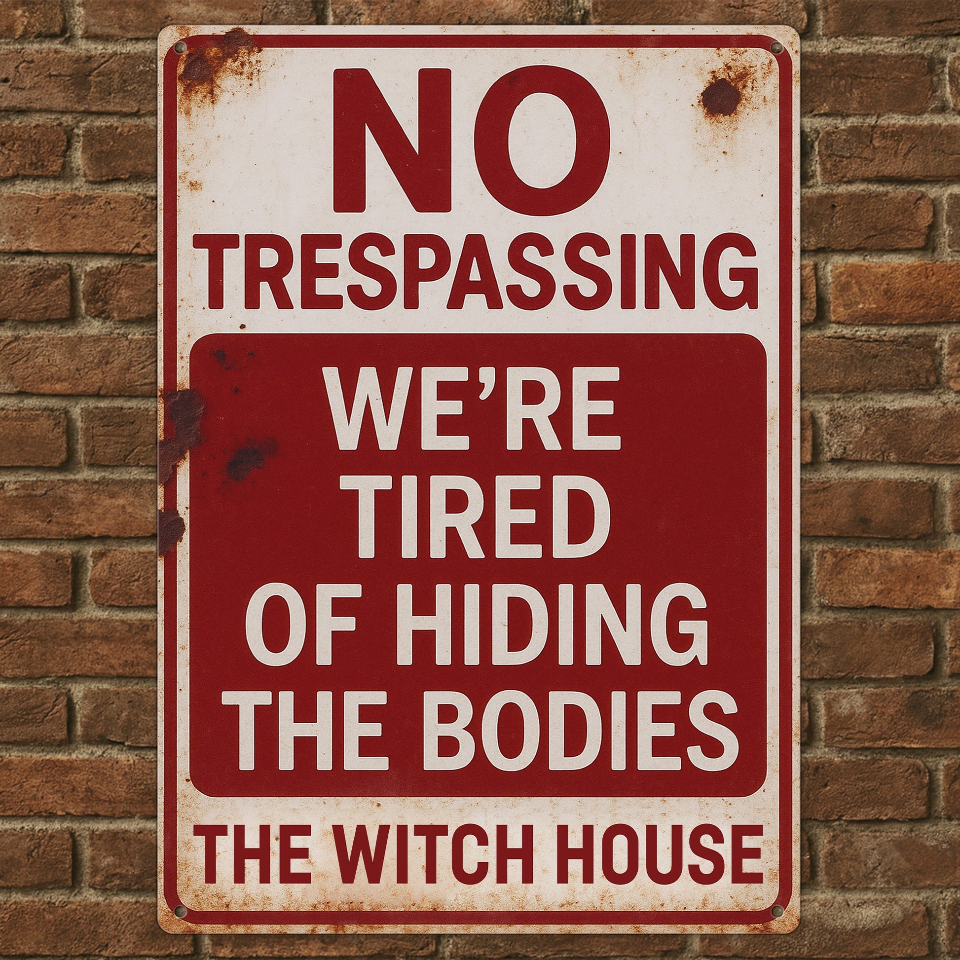 Add a touch of humor and spooky charm to your space with our “No Trespassing – We’re Tired of Hiding the Bodies” Metal Sign. Crafted from durable, high-quality aluminum, this sign is built to withstand both indoor and outdoor use, making it perfect for your front porch, garden, fence, entryway, man cave, garage, or Halloween display. Featuring a bold red-and-white design with distressed details for a rustic vintage look, this funny warning sign not only catches attention but also adds personality to your home decor. Lightweight yet sturdy, it comes with pre-drilled holes for easy hanging on walls, doors, or gates.