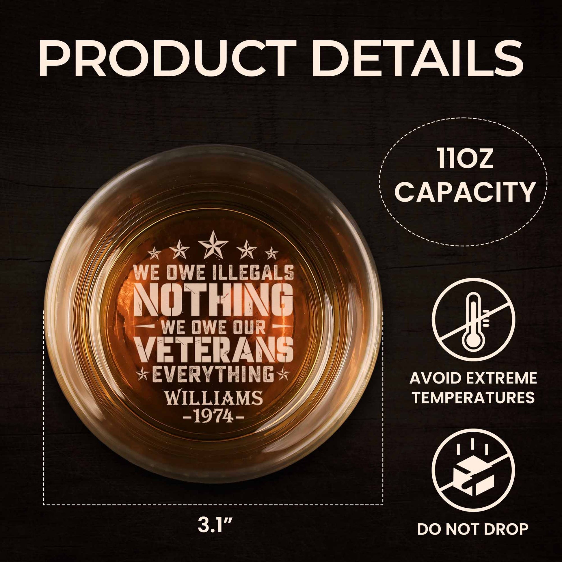 Patriotic Veteran Tribute Glass Ashtray - Personalized Engraved Whiskey Glass