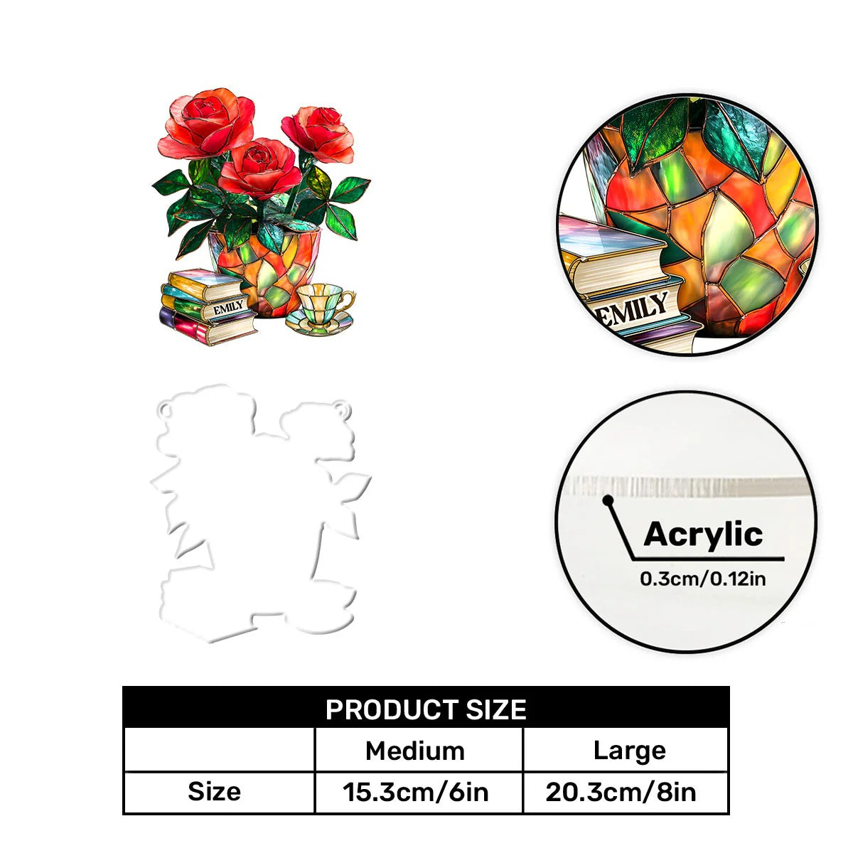 Rose, Book And Tea - Personalized Window Hanging Suncatcher